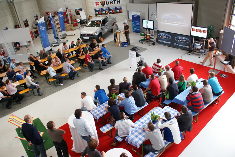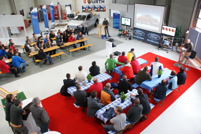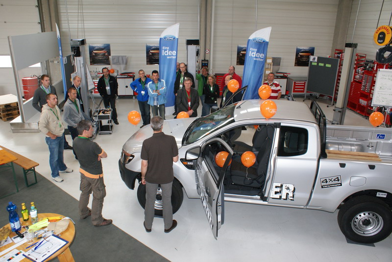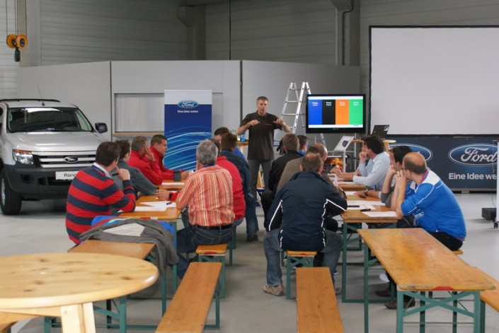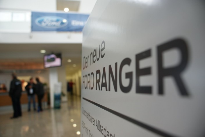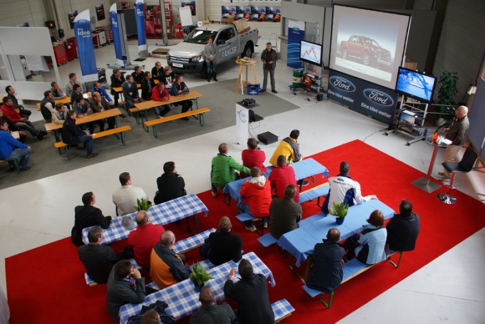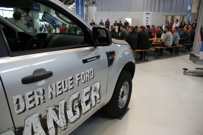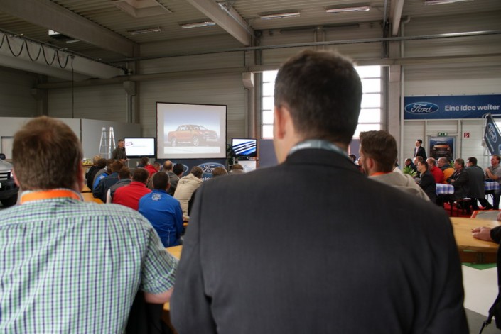 Der neue Ford Ranger wird den Verkäufern im On- und Off-Road-Gelände präsentiert.
