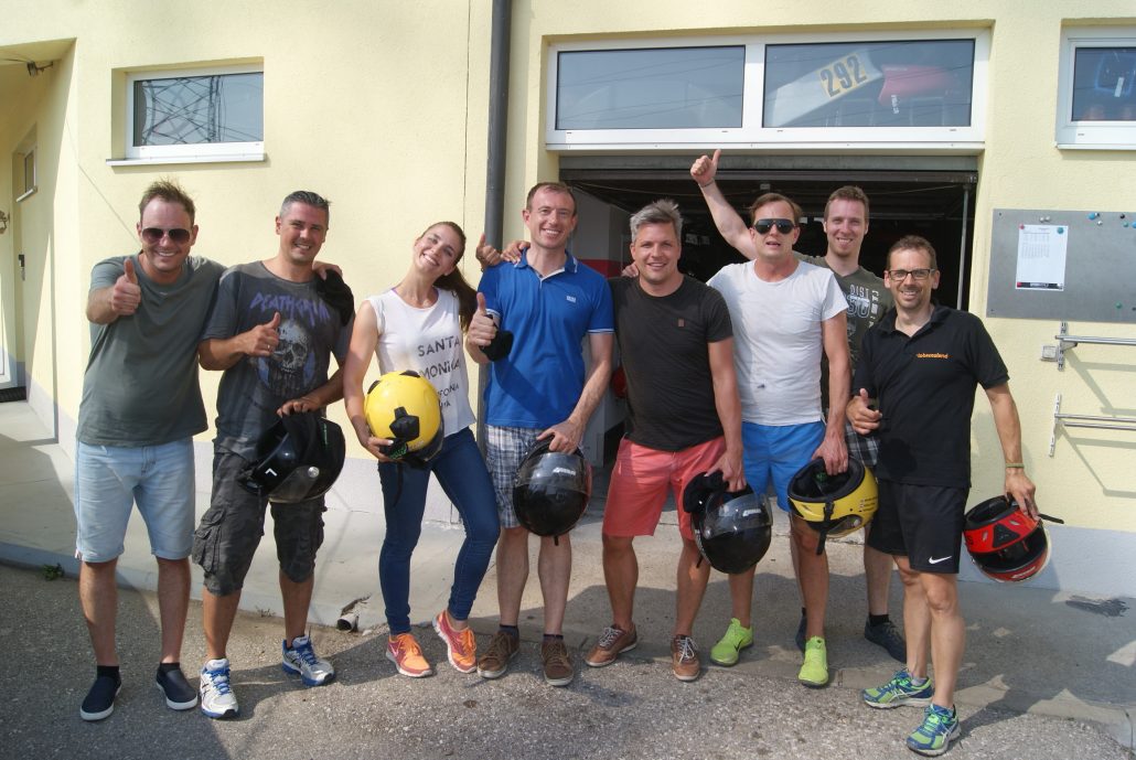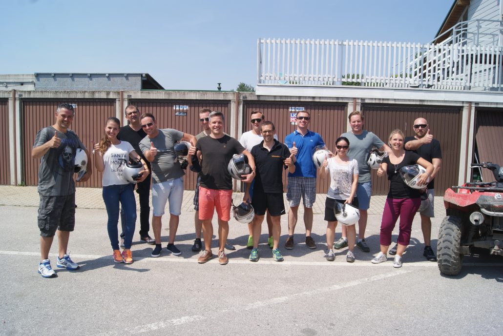 Das Team von Tobaccoland schwitzte bei der Quad-Tour genauso wie im Go-Kart! Aber Spaß hat’s gemacht!